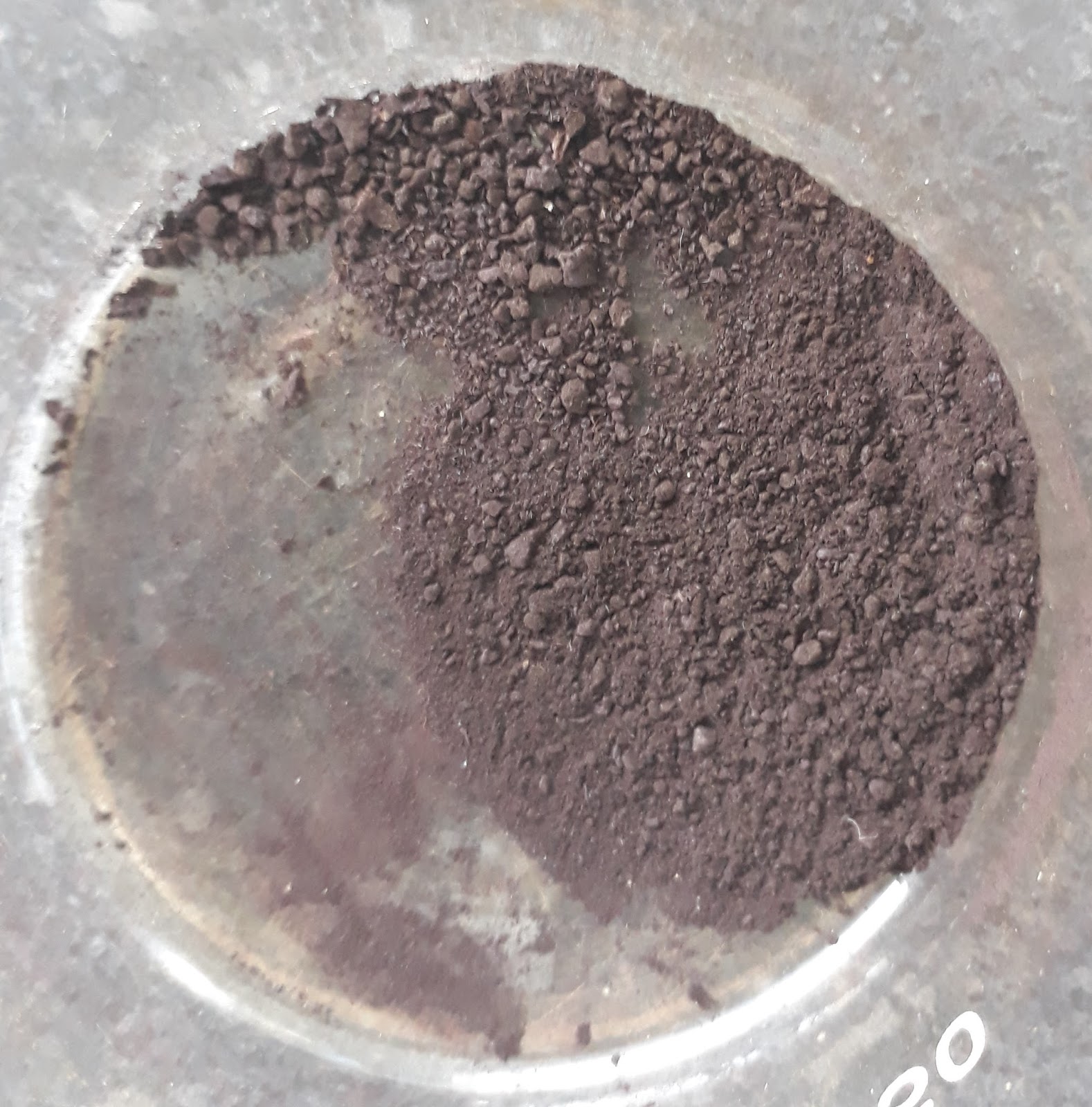 In a 200ml conical flask, I dissolved tetraamminecopper(ii) sulphate (5g, 0.0203 moles) in water (30ml), giving a rich dark blue solution. I then chilled the solution down to 8 C and added cold saturated potassium permanganate solution (31ml). Without delay, I chilled the mixture down to 2 C, then filtered off the precipitated product immediately, pressing it on the filter to remove as much liquid as possible. The product was then allowed to dry.